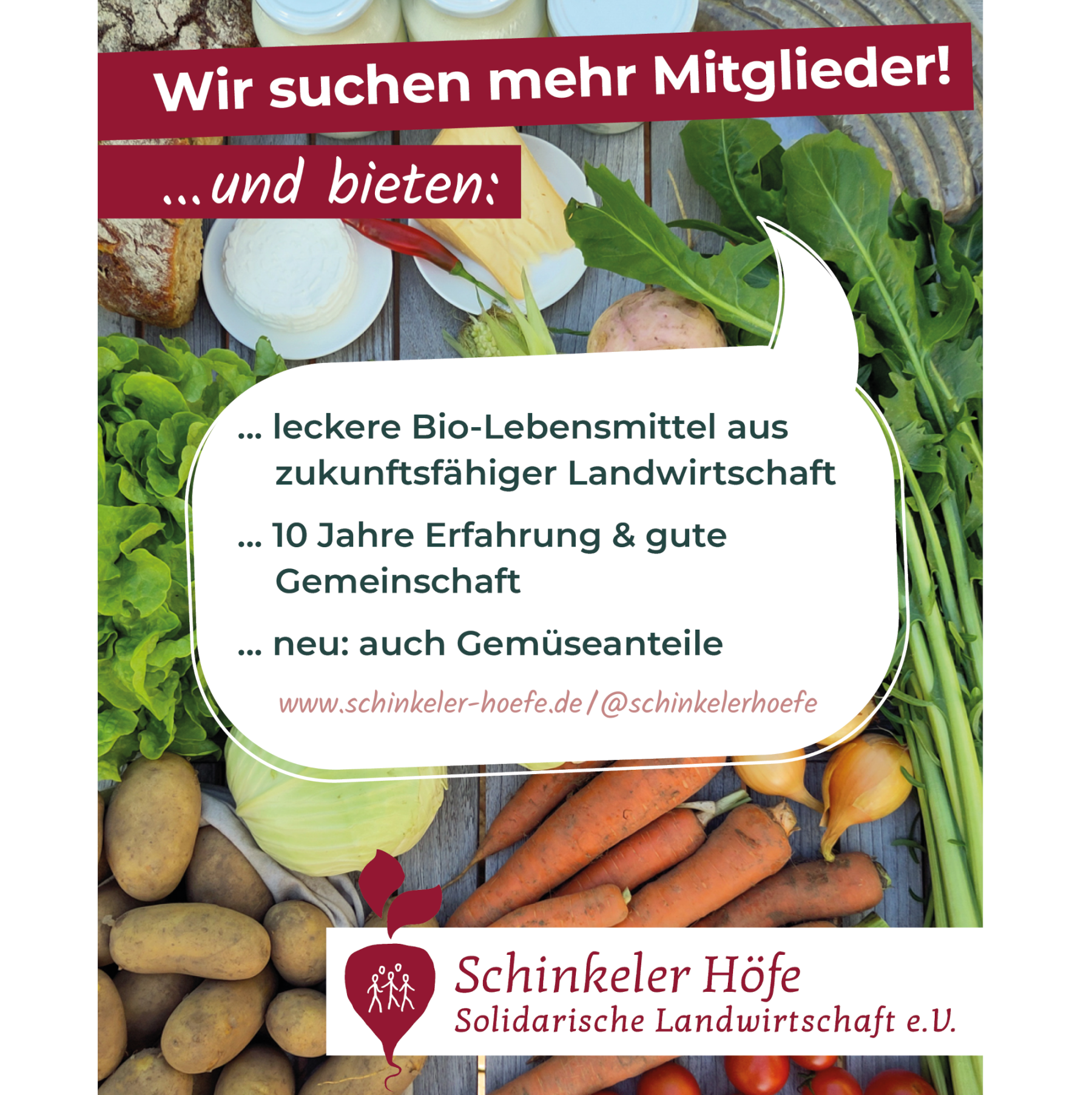 Nach 10 Jahren Erfahrung möchte die Solidarische Landwirtschaft Schinkeler Höfe ab April 2026 weitere 100 Familien / Paare / Gruppen aufnehmen. Wir bieten eine Basisversorgung der Ernährung von unseren regionalen Bioland-Betrieben aus Schinkel an.